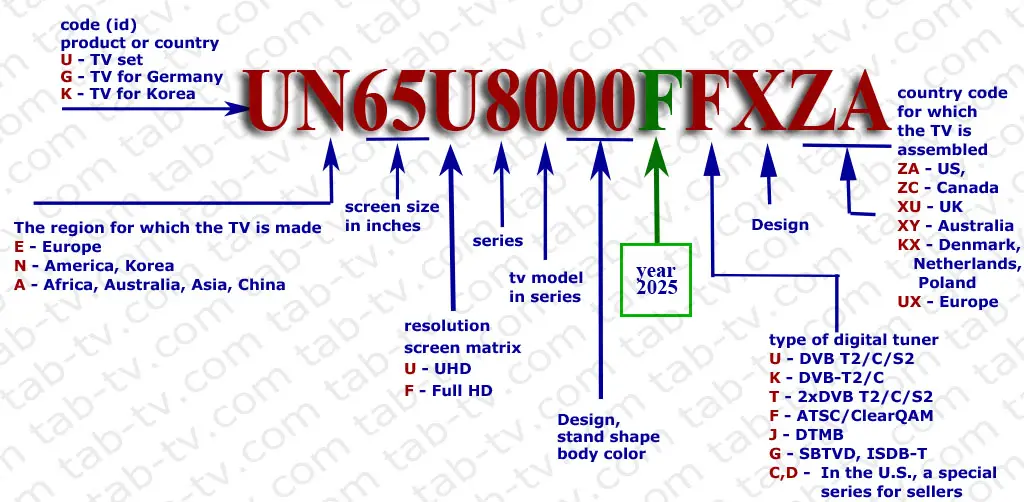 Os números de modelo das TVs Neo QLED e QLED são os mesmos, a única diferença é uma letra que representa uma TV QLED ou NEO QLED. Vale destacar que os primeiros modelos de tais TVs lançados em 2017-2018 tinham uma estrutura de número de modelo ligeiramente diferente, que explicarei em detalhes a seguir.