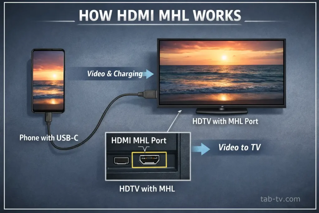A designação MHL refere-se a uma tecnologia obsoleta para conectar smartphones via USB ao HDMI — hoje em dia é raramente utilizada. Essa porta contém um chip que converte o sinal de USB-C para HDMI; no passado, era usada principalmente para transferir vídeos e fotos de um smartphone para a TV.